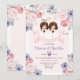 Purple & Pink TWIN Girl 1st Holy Communion Floral Invitation