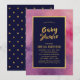 This elegant Baby Shower invitation features purple pink watercolor, the words "Bridal Shower" and a border both in faux gold foil and a dark blue centre. Invitation has a faux gold foil polka dot pattern against a dark blue background backside. Check out matching stickers and postage stamps here https://www.zazzle.com/collections/119583355714601173?rf=238364477188679314