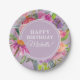 Purple Pink Watercolor Floral Birthday Party Paper Plate