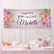Purple Pink Watercolor Floral Happy Birthday Name Banner