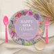 Purple Pink Watercolor Wildflower 60th Birthday Paper Plate