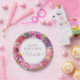 Purple and pink watercolor wildflowers "Happy birthday" paper plates. Text, font, font size and colour are completely customisable, so make these plates your own. Take a look at our matching party supplies.