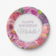 Purple Pink Watercolor Wildflowers Happy Birthday Paper Plate