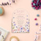 Personalise this beautiful baby in bloom baby shower arch acrylic invitation with your own wording easily and quickly, simply press the Edit Using Design Tool button to further re-arrange and format the style and placement of the text. Featuring exquisite delicate wildflower in soft pastel hues of blush, pink and purple and fluttering butterflies. All text is editable. For a seamless and coordinated look, explore our range of matching items available in-store. (c) The Happy Cat Studio