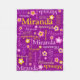 Cute originally designed text name personalised blanket. This purple, pink, white and yellow text typographical blanket can also be customised with your own short name, currently reads Miranda. Other name available or contact me for name requests. Original art and design by Sarah Trett for www.mylittleeden.com