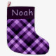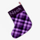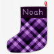 A large monogrammed Christmas stocking featuring a beautiful diagonal plaid pattern design in plum purple. Create the perfect customised gift by clicking the “personalised” button to add a name or custom message in the provided template field. Select the “click to customise further” link to change the font, text size and more.