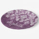Purple Plum Grunge Damask Pattern with Name Paper Plate