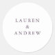 This wedding envelope seal/sticker features a minimalist purple-plum background with white text. Fully customisable with your names and background colour. For more detailed customisation, click the "Click to Customise further" link. Matching wedding suite items are also available in this collection.