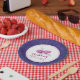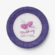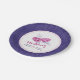 Pine cone drawing art personalised wedding paper plates with a navy blue weave fabric effect outer. Pretty pastel shades of plum purple, navy blue and white. A perfect finishing touch to your pine cone wedding tables. Customise with your own wedding names. Ideal for winter or rustic country weddings. Unique drawing and design by Sarah Trett.