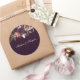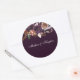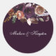 Purple Plum Peach Burgundy Flowers Wedding Name Classic Round Sticker