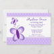 Two adorable purple butterflies are featured on this cute purple polka dot birthday invitation.