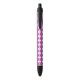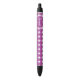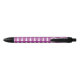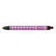 Purple dots in close quarters create a secondary pattern of white stars. A large purple circle is surrounded by white lines, while a single white initial graces the centre.