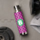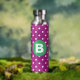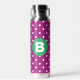 Purple Polka Dot Pattern Green Monogram Water Bottle