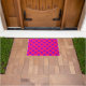Purple polka dots on cerise doormat