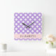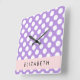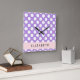 Purple Polka Dots, Polka Dot Pattern, Your Name Square Wall Clock