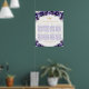 This elegant and glamourous Quinceañera table seating chart features a gold crown and beautiful dark purple floral arrangements with gold confetti. The text combines handwritten script and modern sans serif fonts for a classy and sophisticated look.