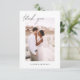 Wedding Thank You Cards that have a photo pictures and text on the front and back. The Thank you cards contain a modern hand lettered cursive script typography that are elegant, simple and modern to use after you minimalist simple wedding day celebration.
