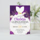 Prepare to be spellbound by this captivating Purple Quinceañera Floral White Princess Dress Invitation Invitation! This enchanting design swirls with the rich elegance of Purple, adorned with delicate white floral motifs and a silhouette of a flowing white princess dress, creating an unforgettable invitation for your magical quinceañera celebration.