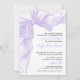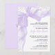 This beautiful design features a soft watercolor purple bow with a delicate ribbon frame accenting the top and left side. Behind the bow, faux purple glitter confetti is scattered along the top and left edges, adding a fun and glamorous sparkle while keeping the look graceful and refined. At the top, the birthday girl’s name appears in an elegant purple script font, creating a stunning focal point for the invitation.