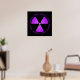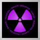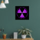 Black poster with purple radiation symbol surrounded by "Danger - Radiation" in repeating purple text.