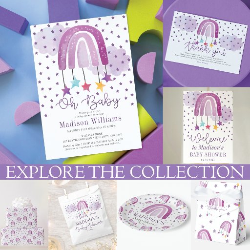 Purple Rainbow Baby Shower Pastel design. Matching products can be found in Rainbow Baby Shower collection.