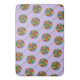 Bath mat design features an original marker illustration of colourful rainbow lollipops, on a purple background.