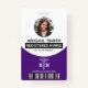 Medical staff purple Registered nurse, caduceus photo template Badge with barcode. It features your name, title and photo on white background while the caduceus symbol and the barcode are on purple.