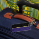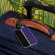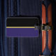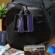 Easily distinguish your luggage with one of these purple, black, and gold luggage tags. Use the EZ template to personalise with your own name and address.