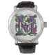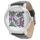 Elegant purplemonogram M in the style of a mediaeval or renaissance period illuminated manuscript.