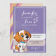Purple Retro Cute Puppy Themed Kids Birthday Party Invitation
