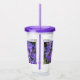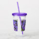 Sip your favourite, cold drink in this acrylic tumbler that features a photo image of purple Rhododendron augustinii flower species with pink stamen printed on both front and back. A lovely, floral design! Tumbler comes with lid and plastic straw in your choice of colour.