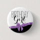 Fashionable purple bow ribbon "Birthday Girl" printed design button.