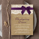 Purple Ribbon On Kraft & Lace Thanksgiving Dinner Invitation