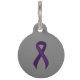 Wearing the ribbon in February for Macular Degeneration Awareness. In April for Animal Abuse Awareness, Sarcoidosis Awareness, Sjogren's Syndrome Awareness, Testicular Cancer. May for Cystic Fibrosis Awareness, Fibromyalgia Awareness, Lupus Awareness. September for ADHD Awareness, Thyroid Cancer Awareness, Victims of 9/11 - WTC Awareness Ribbons. November for Alzheimer's Disease Awareness, Colitis Awareness Ribbons, Crohn's Disease Awareness, Domestic Violence Awareness, Epilepsy Awareness, Homelessness Awareness, Pancreatic Cancer Awareness, Pancreatitis (Chronic) Awareness. The purple ribbon also stands for ADD Awareness, Anti-Violence Awareness, Arnold Chiari Malformation Awareness, Leimyosarcoma Awareness, Mucolipidoses Awareness, Mucopolysaccharidosis Awareness, No Unattended Kids in Cars Awareness, Religious Tolerance Awareness, LGBT hate crime awareness, bullying and suicide prevention.