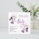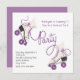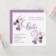 A kids birthday party invitation featuring an illustration of a pair of roller skates with purple wheels, strings, and stars. Personalise the text.