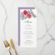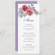 Simple yet elegant wedding menu design featuring watercolor flowers and foliage on a white background. Reverse side of the menu is in lavender purple colour.