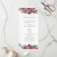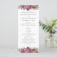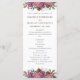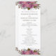 The wedding ceremony program features a watercolor coral pink and purple rose border. A beautiful floral design of florals and foliage.