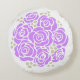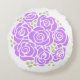 Elegant graphic posy of bright purple stylised roses round pillow. Ideal to add a touch of graphic bold floral purple, white and a touch of sage grey green to your home.