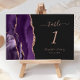 Purple Rose Gold Agate Dark Wedding Table Number