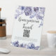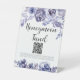 An elegant floral border of watercolor purple roses frame these chic winter wedding pedestal sign for your honeymoon fund within the beautiful violet flowers and lavender botanical leaves. Perfect, personalised signage and a QR code to your website.