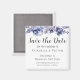 An elegant floral frame of watercolor purple roses frame this chic winter wedding Save the Date magnet with a beautiful botanical border of violet flowers and leaves.
