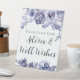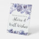 An elegant floral border of watercolor purple roses frame these chic winter wedding pedestal sign for advice and well wishes within the beautiful violet flowers and lavender botanical leaves. Perfect, personalised signage.
