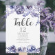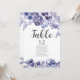 Elegant watercolor purple roses frame this chic evening winter wedding table number card with a beautiful border violet flowers and lavender botanical leaves at the top and bottom. Customise with your guests names for seating. Gorgeous violet floral wedding reception decor for a modern bride and groom.