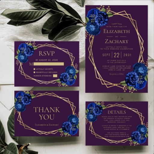 Royal Blue Purple Floral Gold Geo Wedding SuiteDesigned by Akhates Designs
