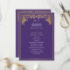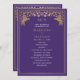 Unveil the magic of your big day! These mediaeval fantasy wedding programs feature a regal lion surrounded by intricate gold florals and a monogram against a purple background, blending elegance with a touch of grandeur. A perfect keepsake for your fairytale celebration! The gold featured on this item is NOT real foil and is printed in flat colours.