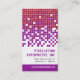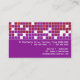 A shower of purple and rust tonal pixels rain down on a business name on the front of this business card. A website prints below in a rich purple panel. The reverse reveals a portion of the pixel image with full contact information printing in a purple panel below. Great for information technology, telecommunications, or marketing and communications companies. Available in alternate colours with matching products.