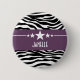 Trendy and modern Sassy Star Zebra Button featuring a chic black and white zebra print background and a bold purple border adorned with a fun star motif. This girly design may be customised with the personalised text of your choosing. Click "Customise It" to find more personalisation options.
