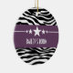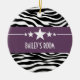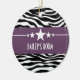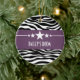 Trendy and modern Sassy Star Zebra Ornament featuring a chic black and white zebra print background and a bold purple border adorned with a fun star motif. This girly design may be customised with the personalised text of your choosing. Click "Customise It" to find more personalisation options.