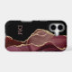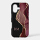 Here's an elegant phone case that combines purple, lavender, and burgundy faux agate with faux silver glitter borders and dramatic black. The combination forms an appealing abstract design on one side. The solid black side holds your two letter monogram in matching lavender purple. Unique!