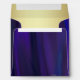 Elegant square wedding invitation envelope, done in purple coloured satin look, on the outside, and a pale yellowish gold, on the inside of the envelope. A semi transparent text area, on the front is decorated with graphics of a colourful peacock and gold tone flourishes. Golden yellow text return address, on the back flap, is fully customisable and ready to personalise with your information. Lovely finishing touch to our Purple Satin and Peacock Wedding Invitations.